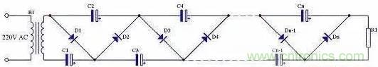 二倍压电路还可以很容易的扩展为n倍压电路,具体电路见图16。