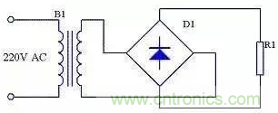 设B1次级电压为E,理想状态下负载R1两端的电压可用下面的公式求出: