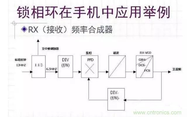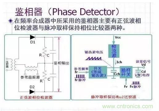 2.锁相环(PLL)锁相环四个基本构成元素:鉴相器(PD)鉴频器(FD)鉴相鉴频(PFD):PD/FD/PFD是一个相位/频率比较装置,用来检测输入信号与反馈信号之间的相位/频率差环路滤波器Loop Filter(LP):LP一般为N阶低通滤波器电压控制振荡器(VCO):VCO是一个电压--频率变换装置 ,输出振荡频率应随输入控制电压线性地变化参考信号源(Reference signal source):参考信号源提供与反馈信号鉴相鉴频用的对比输入信号
