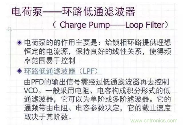 基本构成电路分析鉴相器(Phase Detector)电荷泵——环路低通滤波器(Charge Pump——Loop Filter )压控振荡器(Voltage Controlled Oscillator)分频器(DIV)