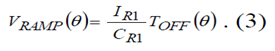 在功率开关管关断期间,CR1电容的充电电流是IR1恒流,CR1电容上的电压VRAMP (θ)线性升高: