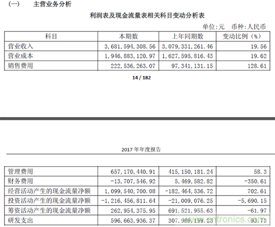 汇顶科技近日还发布了2017年年度报告以及2018年第一季度报告,报告显示,公司2017年实现销售收入约36.82亿元,同比增长19.56%;归属于上市公司股东的净利润为8.87亿元,同比增长3.52%。