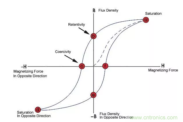 增加磁芯的磁导率,可以提高电感值,通常使用铁磁性材料做磁芯。铁磁性材料存在磁饱和现象,即当磁场强度超过一定值时,磁感应强度不在增加,即磁导率下降了,也就是电感下降了。在额定电感值范围内,允许的最大电流即为饱和电流。