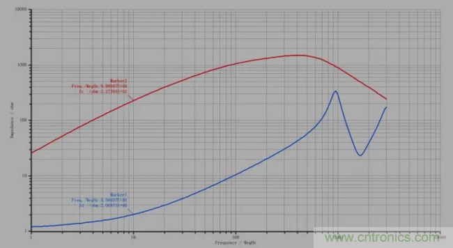 由于Cp的存在,与L一起构成了一个谐振电路,其谐振频率便是电感的自谐振频率。在自谐振频率前,电感的阻抗随着频率增加而变大;在自谐振频率后,电感的阻抗随着频率增加而变小,就呈现容性。