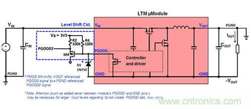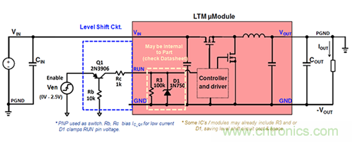 图2.μModule稳压器的输入信号必须从电源地电平转换为-VOUT参考电平