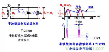 半波整流电容滤波电路如图Z0710所示。其滤波原理如下: