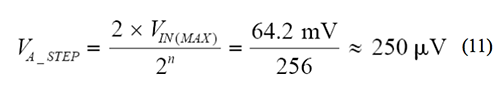 在±25-mV 最大电桥失调范围内,±32.1-mV 的调整范围可提供28%的额外调整裕量。对于 8 位 DAC,调整步长为: