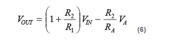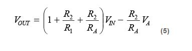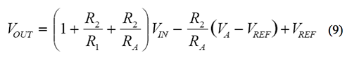如果相对于原始等式中的 VREF 取 VOUT 和 VA,则可得到相同的结果。VA(MAX) – VREF 也应替换等式(7)中的 VA(MAX)。