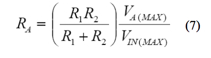 为了找到一个 RA值以允许最大失调调整范围 VIN(MAX),在给定调整电压范围 VA(MAX)的情况下,使 VOUT = 0,求 RA,结果得到