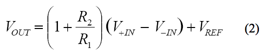 一般地,对于单电源电桥调理应用,参考端的电压应大于信号地。如果电桥输出可以在正负间摆动,情况尤其如此。如果基准电压源由一个低阻抗源(如分阻器和缓冲器)驱动至电压VREF,如图 5 所示,则等式(5)变为: