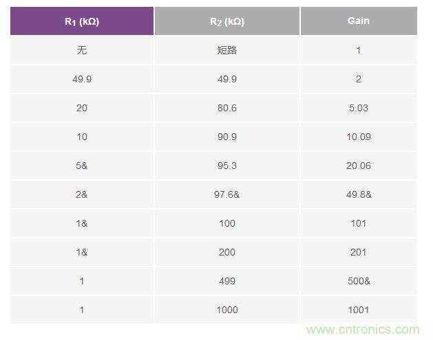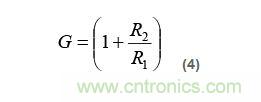 从等式(7),我们可以算出额定增益值为 103。如果设计师希望得到接近目标值 100 的增益值,最简单的办法是使 R2 的值降低 3%左右,至 97.6 k?,结果对 RA 的值的影响非常小。在新的条件下,额定增益为 100.6。