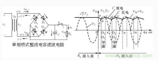 2 .开关S闭合,即为电容滤波电阻负载,当变压器付边电压大于电容上电压时