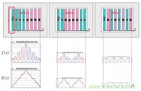 不同绕组结构的磁场和电流密度分布
