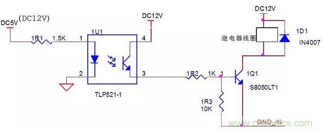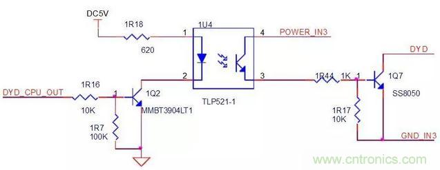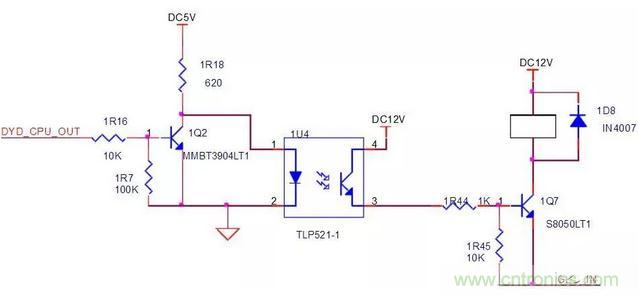 “DYD_CPU_OUT”为高电平,1U4导通,U43=1V,U3=11V,UCE=0V,1Q1-3=0V,线圈两端电压为11.7V。 此图是高电平使能。继电器的常闭触点接负载。