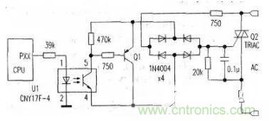 此电路对元件的要求比较高,光电耦合器U1只能采用型号为CNY17F-4的正品元件,实验中试过十多种光电耦合器,仅此型号输入电流50μA时,电路即可工作,其余光电耦合器驱动电流都需几百微安以上。