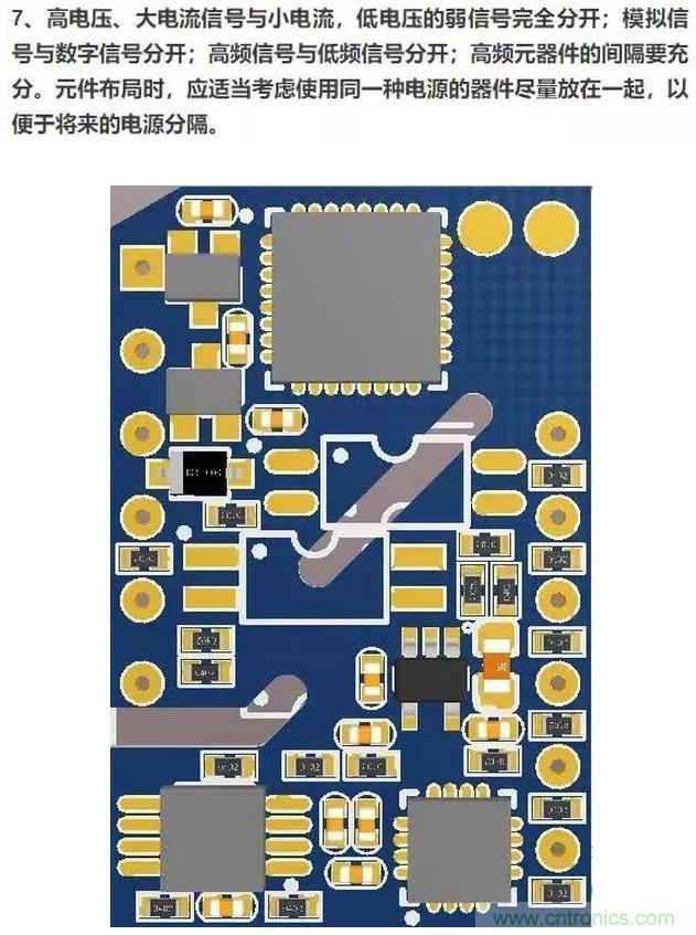 1、遵照“先大后小,先难后易”的布置原则,即重要的单元电路、核心元器件应当优先布局。这个和吃自助餐的道理是一样的:自助餐胃口有限先挑喜欢的吃,PCB空间有限先挑重要的摆。