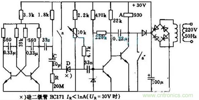 本文介绍的是一款延迟吸合继电器开关控制电路图。如下图所示,在接通电源后,时间流程开始电容C首先放电而后通过20M从点电阻充电。