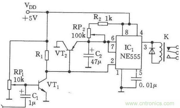 继电器开关电路图(一):延迟吸合继电器开关控制电路图