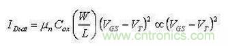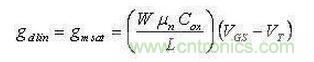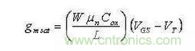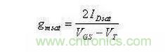 ②在饱和电流IDsat一定时:饱和跨导gmsat却与饱和电压(VGS-VT)成反比: