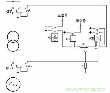 再有,连接片XE也可接至电阻R,使重瓦斯?;げ煌短⒍环⑿藕拧?/div>