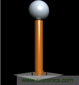 3.组装线圈。把次级线圈的线的一头接在那个金属球上。这个球,我们称为放电顶端。它和地面形成了一个电容。然后用胶或者热胶枪把球固定在管子一头。