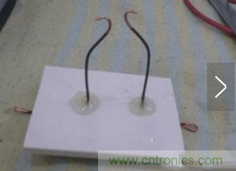 我们可以用稍粗的漆包线来制作打火器。 一般,打火器是不能用尖端的,需要用光滑表面。把两段粗漆包线的一头的皮刮掉,弯成两个光滑表面,然后用热胶枪固定在塑料板上,中间留6~10毫米间隙。