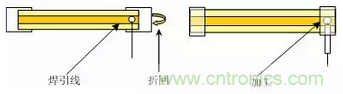①内铜箔一般加工方法:焊接引线→铜箔两端平贴于醋酸布中央→折回醋酸布(醋酸布须完全覆盖住焊点)→剪断醋酸布(铜箔两边须留1mm以上),如图8所示。