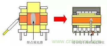 3)组装:如无特殊规定,卧式模型已研磨的铁心装初级端,立式模型已研磨的引脚端;