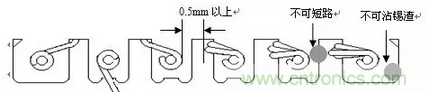 1)引脚为垂直引脚时,可留锡尖,但锡尖长不超过1.5mm。