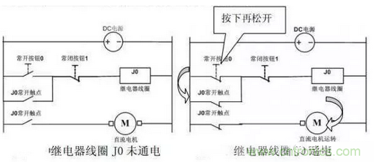 开机 = 按下??磁? → 继电器线圈J0得电 → J0??鞔サ惚蘸?→ 电机得电开机、同时J0??ㄖサ阕运?→ 电机继续运行,如图2-8。