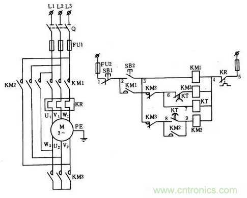 1- 电动机Y/△减压起动控制主电路和电气控制的原理图