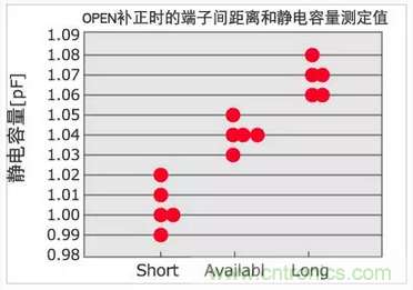 <OPEN补正时的重点>OPEN补正端子间距离和静电容量测定结果