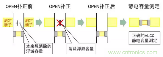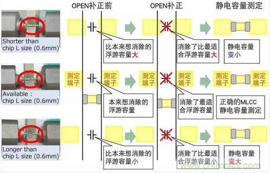OPEN补正端子间距离和MLCC L寸法不一样的状态下进行补正、治具自身的浮游容量就不能得到正确的0补正。