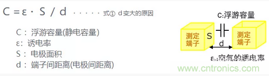 金属和金属间存在绝缘体的话就会产生静电容量。因为空气也是绝缘体所以测定端子间会发生静电容量。