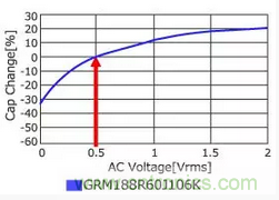 测定条件20℃、1KHz时的MLCC的AC电压特性如下图所示。