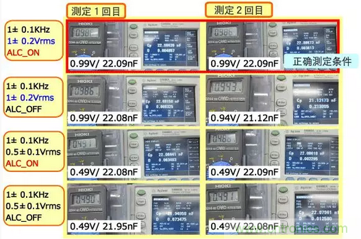 对于大容量MLCC、ALC 设置OFF时测定电压值不满足测定条件