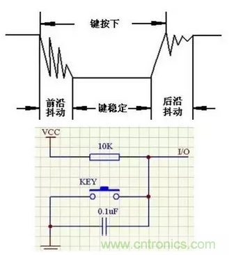 按键也是机械装置,在按下或放开的一瞬间会产生抖动,如下图: