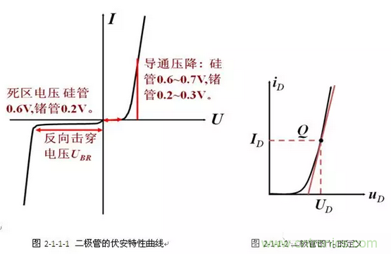 如图2-1-1-2所示,rD是二极管特性曲线上工作点Q 附近电压的变化与电流的变化之比:rD=△UD/△iD
