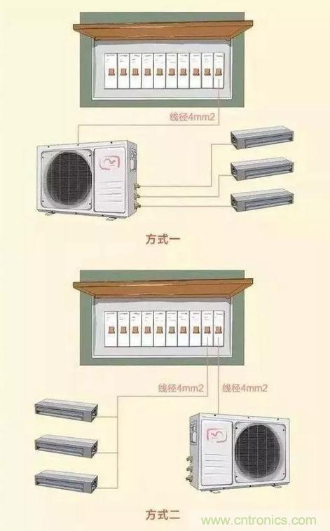 中央空调的接线方式有两种,如图所示