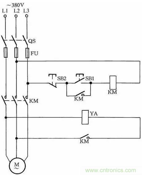 线路中YA为制动电磁铁,在通电后,制动解除;在断电后,YA立即制动。