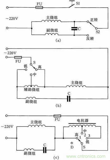 单相电容电动机启动转矩大,启动电流小,功率因数高,广泛应用于家用电器中,如电风扇、洗衣机。为了便于维修安装,现介绍这种电动机常用的接线方法。