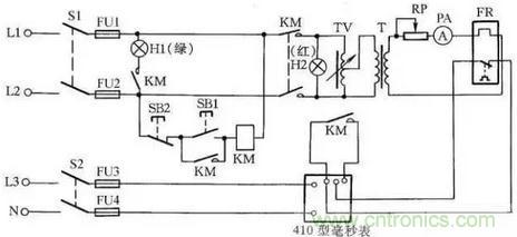 热继电器校验台如图20所示,它主要由调压器TV、降压变压器T、电位器RP、410型毫秒表等元件组成。