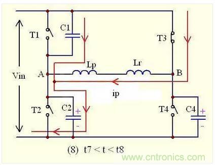 第4、8种工作模式分别是滞后臂与超前臂的谐振模式,稍后上详细的分析过程