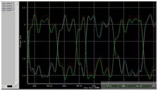 通过差分对IN,OUT的HSPICE仿真,图6显示的结果:差分对线的对称良好。