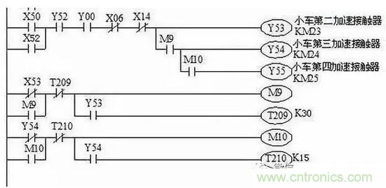 无论多么复杂的梯形图,都是由一些基本单元构成的。按主电路的构成情况,利用逆读溯源法,把梯形图和指令语句表分解成与主电路的用电器(如电动机)相对应的几个基本单元,然后一个环节、一个环节地分析,最后再利用顺读跟踪法把各环节串起来。