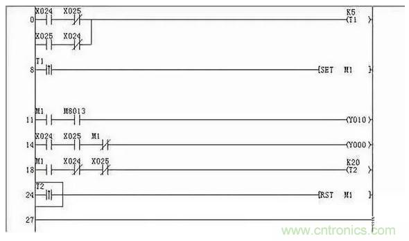 在梯形图和指令语句表中,很容易找到该输出继电器的线圈电路及其得电、失电条件,但引起该线圈的得电、失电及其相关电路就不容易找到,可采用逆读溯源法去寻找: