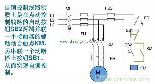 自锁回路是电力控制中必不可少也是应用最广泛的基本电路,如图所示: