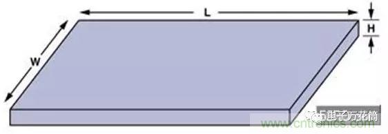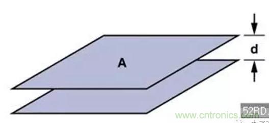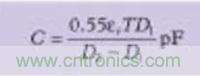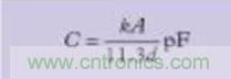 当寻找有问题的寄生源时,可能用得着几个计算上述那些寄生电容尺寸的基本公式。(公式一)是计算平行极板电容器的公式,如(图五)。