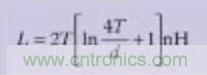 通孔是另外一种寄生源;它们能引起寄生电感和寄生电容。(公式三)是计算寄生电感的公式,请参考(图八)。