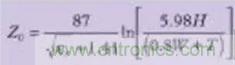(公式六)可以用于计算一块FR4板的特徵阻抗。